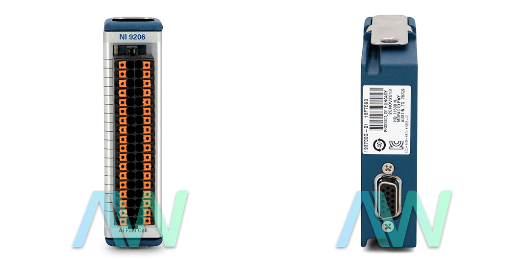 The NI-9206 is an efficient C Series Voltage Input Module from National Instruments. The NI-9206 module is available under part number 779526-01. The NI-9206 module can measure input voltage signals in CompactDAQ/CompactRIO systems. The NI-9206 module’s design fulfills all requirements for voltage measurement applications. The module features an efficient combination of channel count, speed, and resolution. The module can easily measure the voltage of 16 consecutive cells. For this purpose, the module common (COM) is referenced to the middle of the NI 9206 bank. The voltage is limited to 10V of the module COM.
