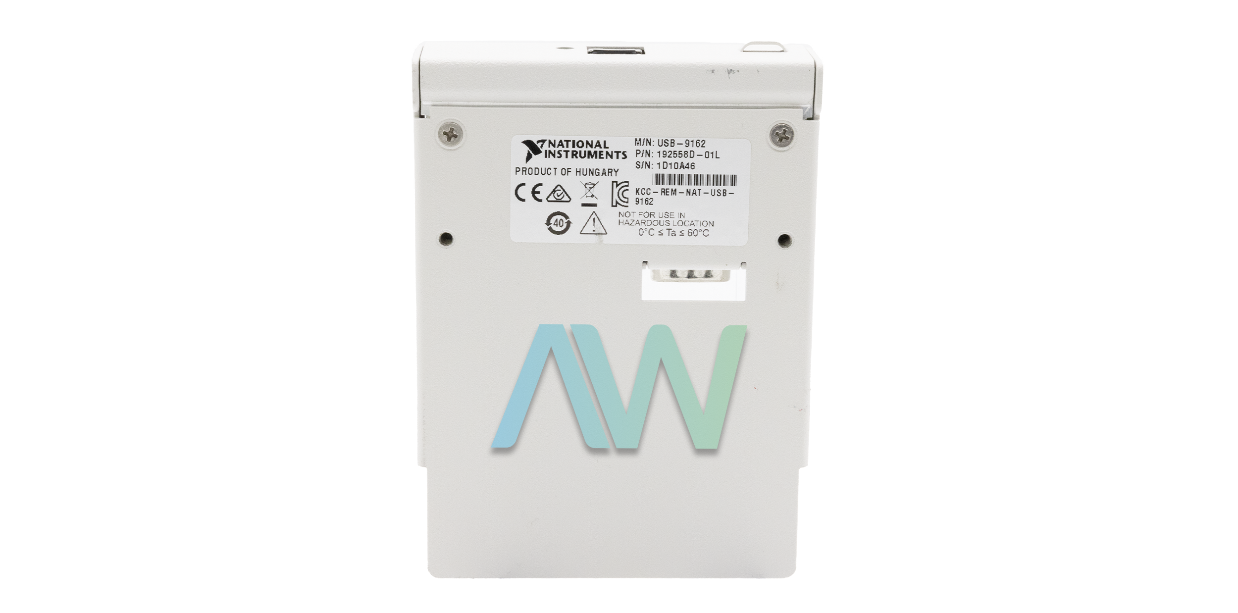 The National Instruments NI USB-9162 (Part Number: 779471-01) is a Single-Module Carrier CompactDAQ Chassis. The USB-9162 is considered an easily portable and cost-effective model for NI C Series modules. This one-slot carrier can be utilized to prototype sensor connections before the user integrates modules into a National Instruments CompactRIO system. The NI USB-9162 Carrier can also be deployed as a debugging instrument for large systems. In addition, the USB-9162 can be used for prototyping sensor links before the modules are introduced into an NI CompactRIO system.