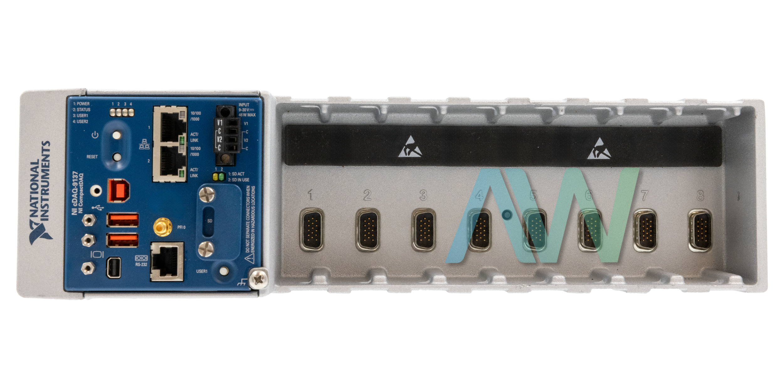 The cDAQ-9137 (Part numbers: 784240-01 and 784241-01) is a data acquisition Controller by National Instruments. This model is equipped with a 1.91 GHz Quad-Core Atom Processor. This model has 32 GB nonvolatile storage. The NI cDAQ-9137 is structured with four general purpose counters/timers with a resolution of 16-bits. The device is also equipped with two Gigabit Ethernet ports and two USB ports, as well as an RS232 serial port and a mini display port. Moreover, this model has an SMB trigger line, an SD slot, and USB device configuration. The device is capable to run seven hardware timed analog and digital terminals concurrently. It can also operate counter/timer operations instantaneously.
