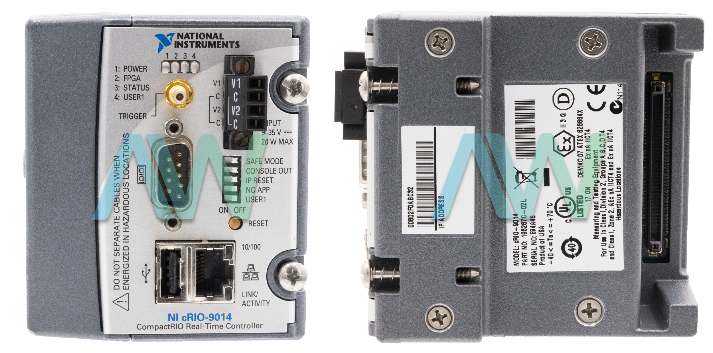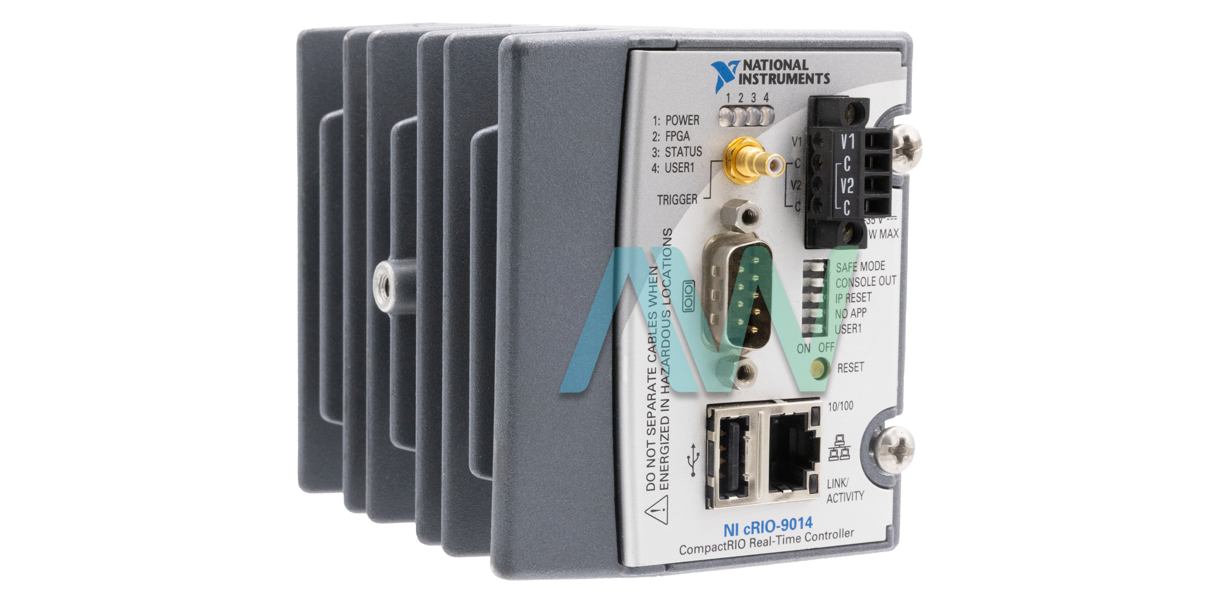 The cRIO-9014 (part numbers: 779564-01 and 779564-02) is a CompactRIO controller developed by National Instruments. This model is used to control and monitor C Series applications. The cRIO-9014 incorporates several ports for various connections. These ports include USB, Ethernet, and an RS-232 serial terminal. The Controller cannot be connected with the C Series devices directly because no such slot is available. However, the NI cRIO-9014 can be interfaced with the C Series device through an extension, a compatible CompactRIO chassis.