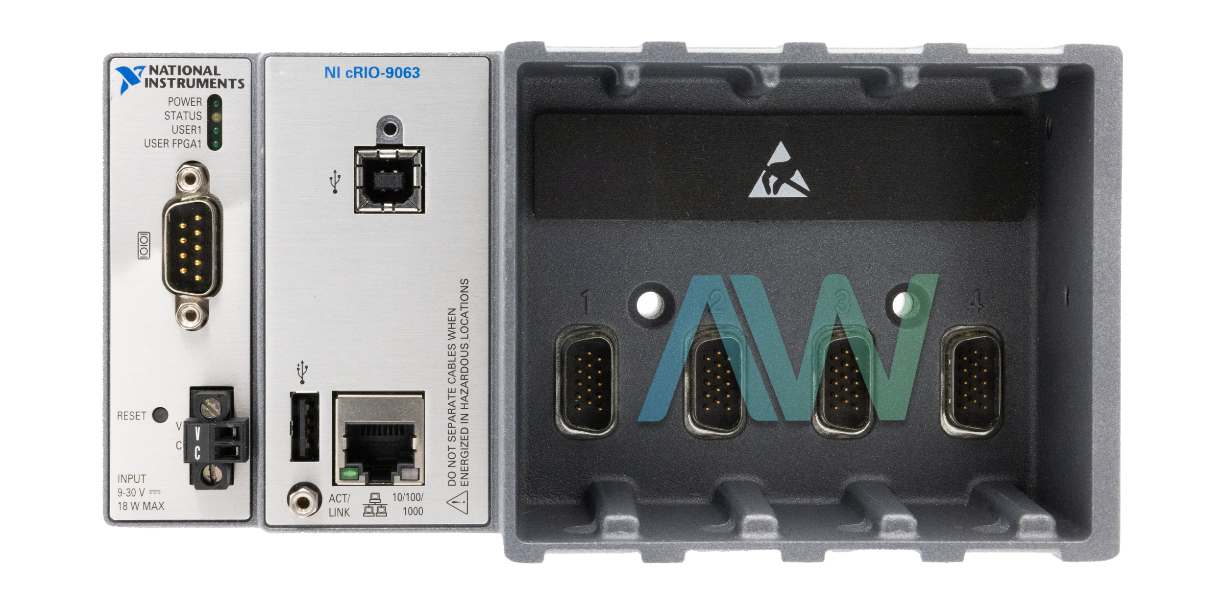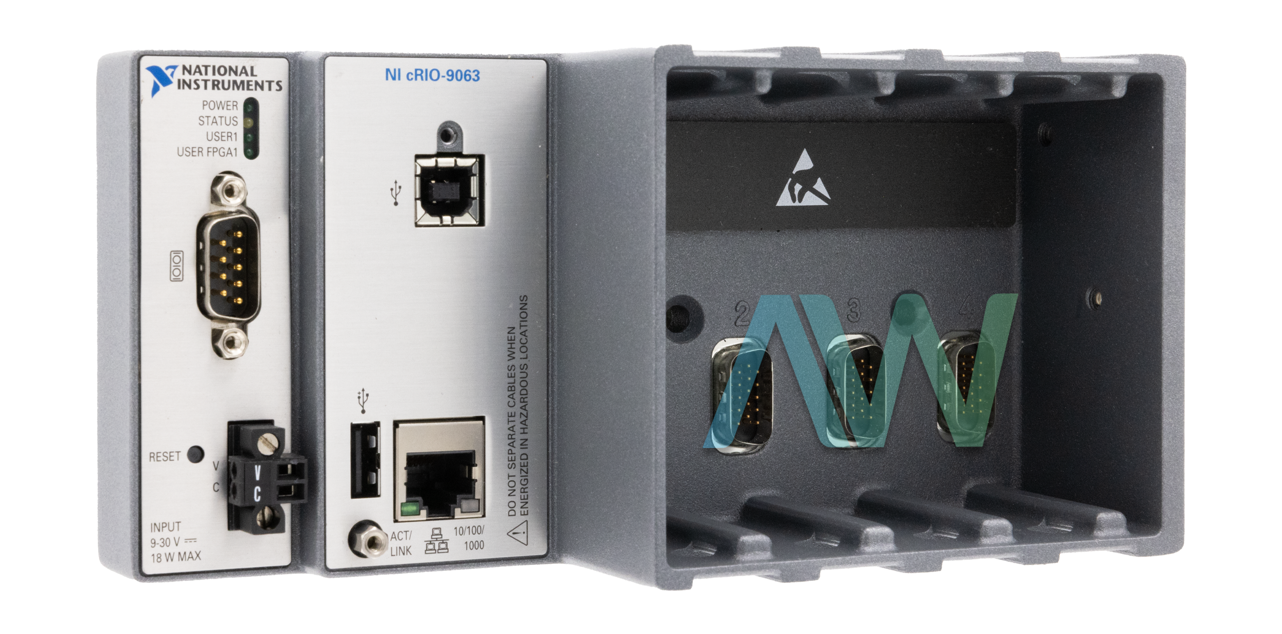 The cRIO‑9063 (Part Number: 783830-01) is an embedded controller designed to control C Series modules. This 2-core controller includes a Xilinx Zynq-7000 FPGA and offers 512 MB of nonvolatile memory, making it an excellent choice for a wide range of testing scenarios. Supported by a 32-bit NI Linux Real-Time OS, the cRIO‑9063 boasts plenty of processing power for different applications. This device offers a variety of network ports, including one Gigabit Ethernet port, one USB host port, one USB device port, and one serial port.