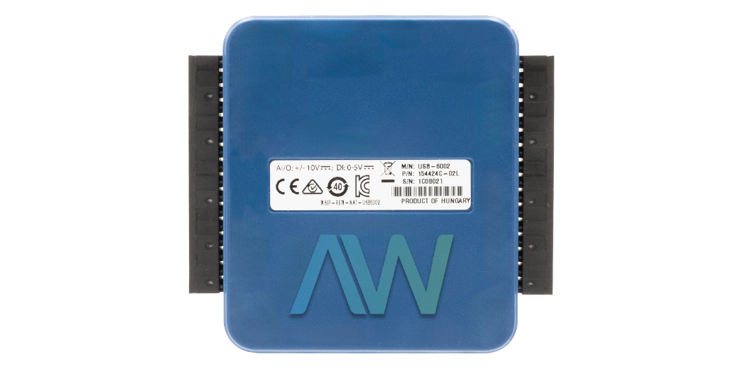 The National Instruments USB-6002 Multifunction I/O Device is a low-cost device. The USB-6002 device supports multiple functions with analog and digital inputs/outputs. The NI USB-6002 can be utilized for simple data logging and portable measurements. The USB-6002 device can be incorporated in academic laboratory experiments. The NI USB-6002 Multifunction I/O Device includes a lightweight mechanical enclosure. The USB-6002 can be used in a portable manner since it can easily be bus powered.